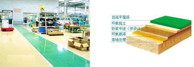 a、環氧平塗地(dì)坪(普通(tōng)車(chē)間(jiān)防塵、對(duì)環境要(yào)求不(bù)高(gāo)的(de)場(chǎng)所)。